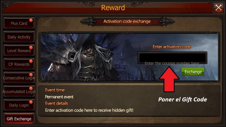 Tienen este espacio Especial dentro del Juego donde pondran todos los Gift Code que Iran Saliendo.